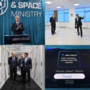 Глава государства посетил Национальный суперкомпьютерный центр Аlemcloud, где принял участие в церемонии запуска суперкомпьютера на базе графических процессоров NVIDIA H200.