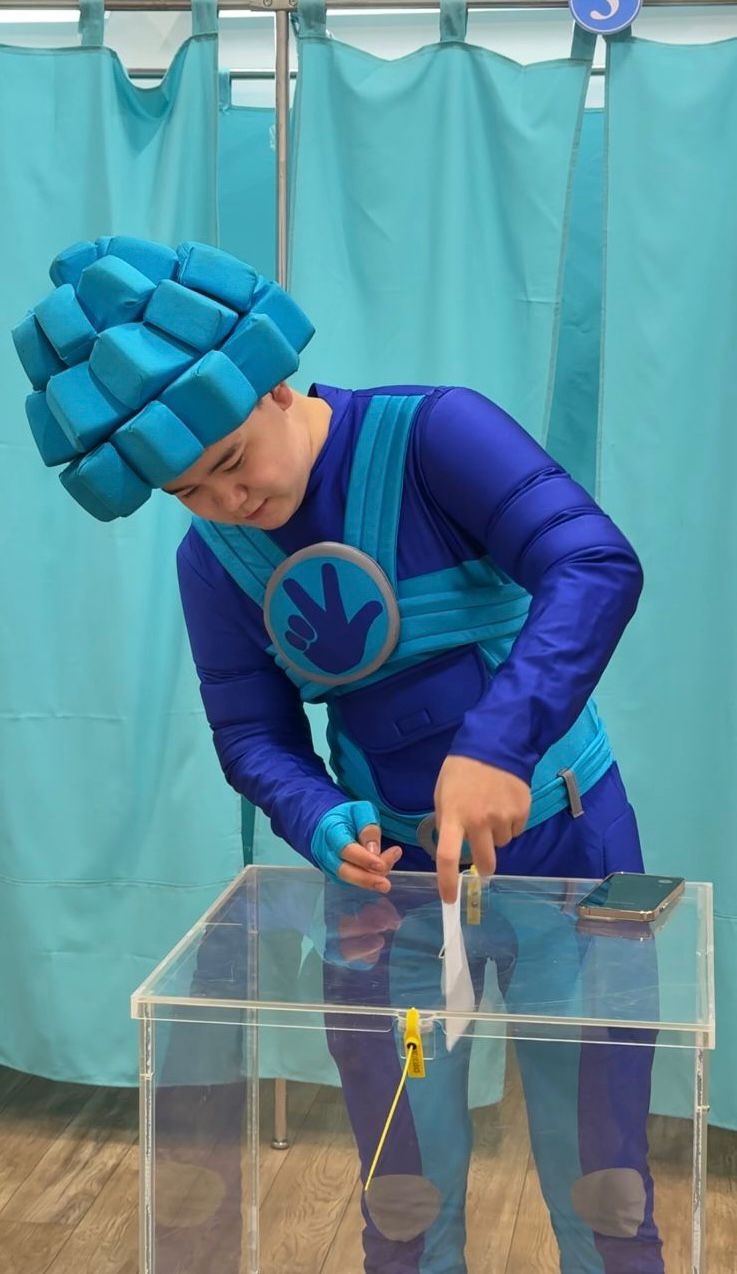 Мульткейіпкердің костюмін киген жас жігіт өз жеке басын тек учаскелік референдум комиссиясының мүшелеріне ғана таныстырып, дауыс берушілер тізімінде белгіленді.